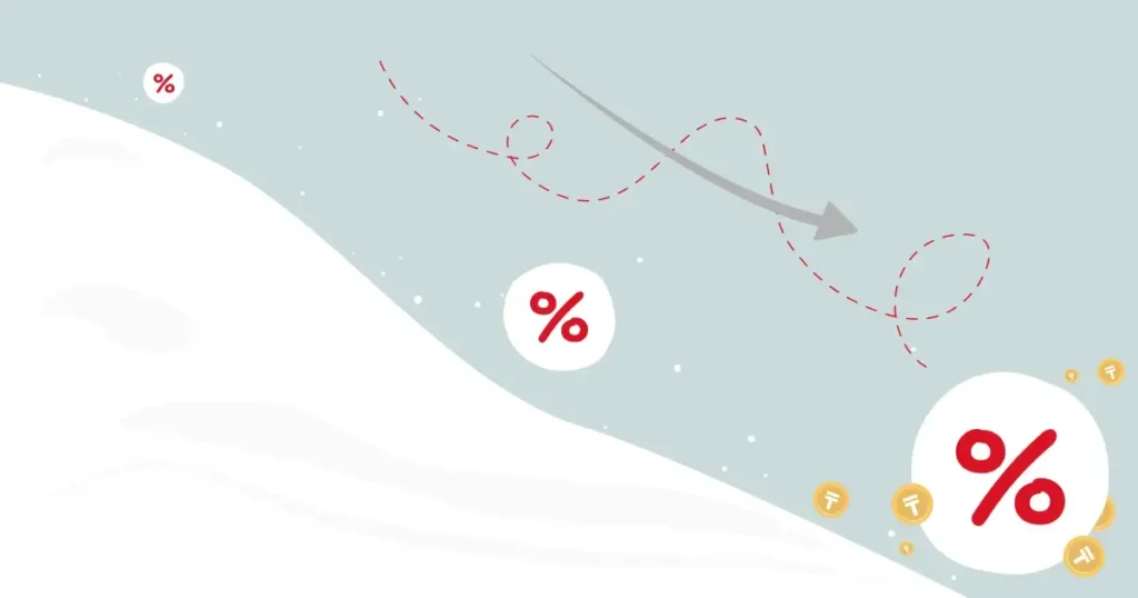 - Спред: -1,75 (27.06.2025 ж. №26 хаттамаға сәйкес, оның аясында салым мөлшерлемесі Қазақстан Республикасы Ұлттық Банкінің базалық мөлшерлемесіне байланысты өзгереді)