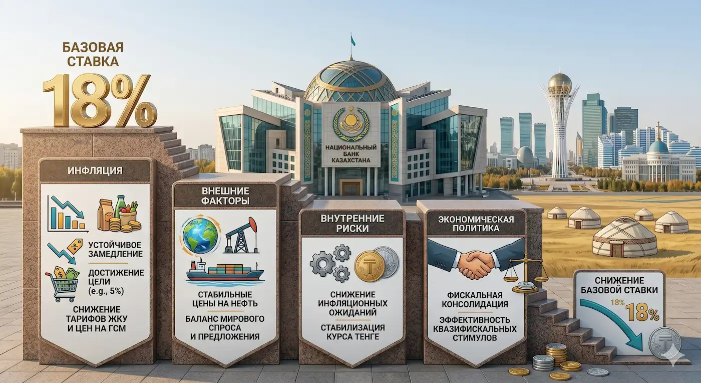 Председатель Национального банка Казахстана Тимур Сулейменов на брифинге 24 апреля 2026 года сообщил, при каких условиях регулятор может приступить к снижению базовой ставки, которая была сохранена на уровне 18%.